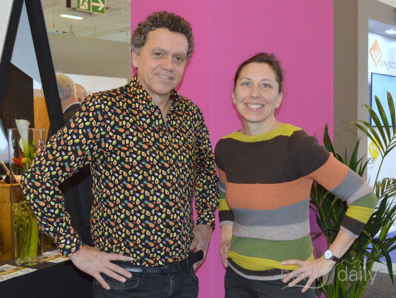 Emilie Morilleau & Kalum Balasuriya van Botanicoir. Op de beurs bezoek van nieuwe klanten en van veel goede bekenden.