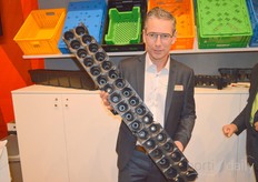 Jerry Arkensteijn van Beekenkamp Verpakkingen met de nieuwe 34 gaats, miniplug tray. Deze is te gebruiken voor in de aardbeien- en frambozenteelt.