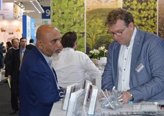 Rob van Adrichem van Hortimat.Handtekeningen worden gezet op Fruit Logistica