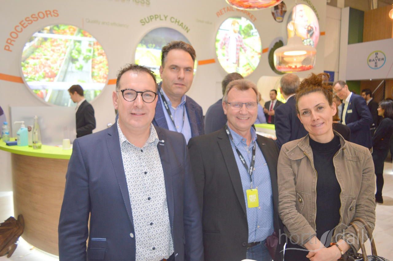 Dominiek Keersebilck, Wim Demeulenaer, Remie Dewitte en Leslie Mareco van REO Veiling. REO heeft zowel Frans als Belgisch product in de kijker staan. Daarnaast gaat het bedrijf de komende periode inzetten op witloof.