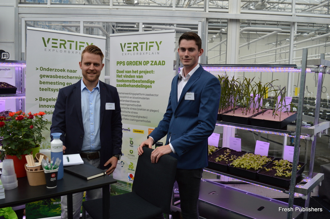 Jasper Schermer and Roald Slagter with Vertify. One of the major ongoing projects is a germination test comparing chemical coatings with low-chemical and biological-based coatings.