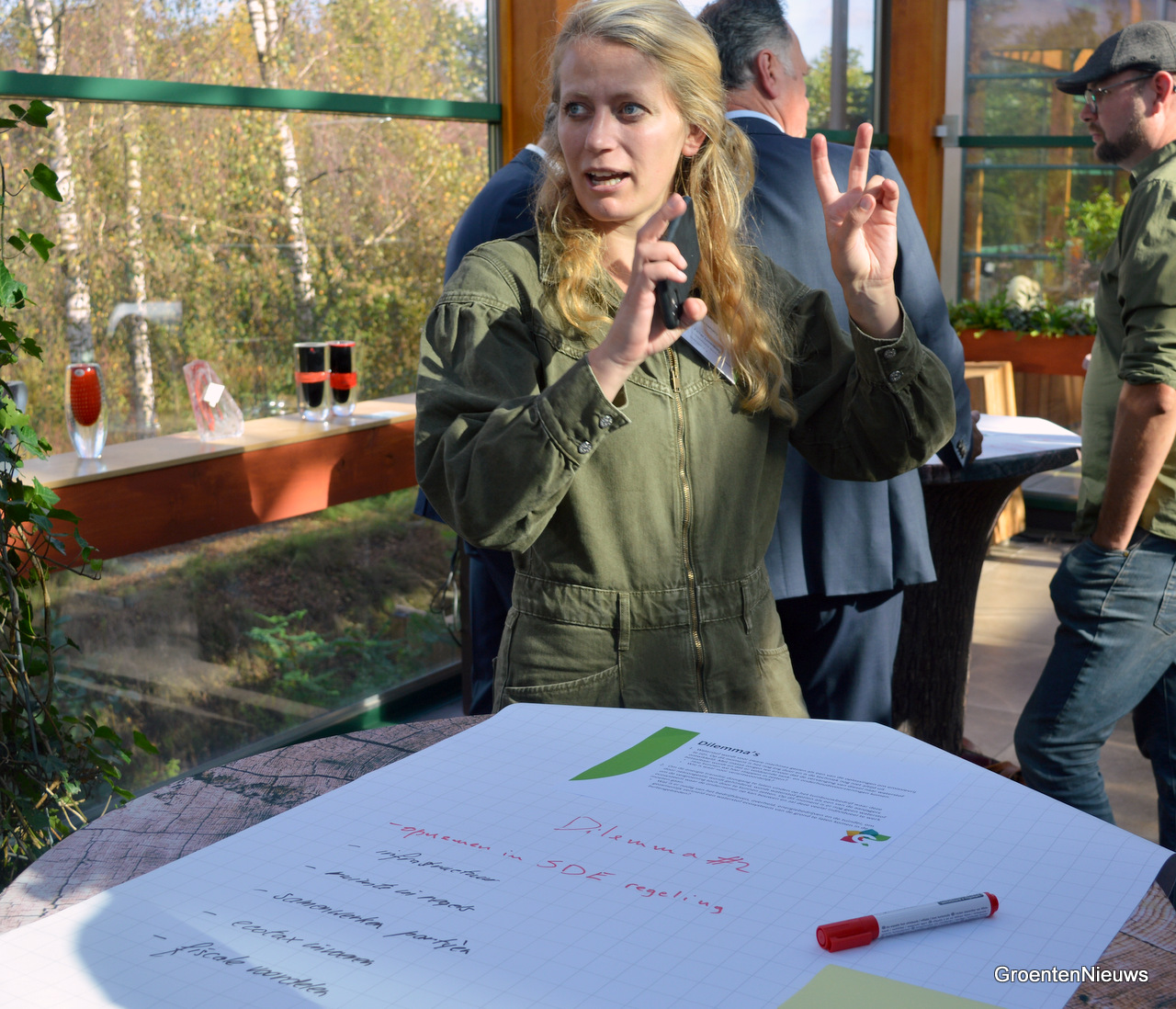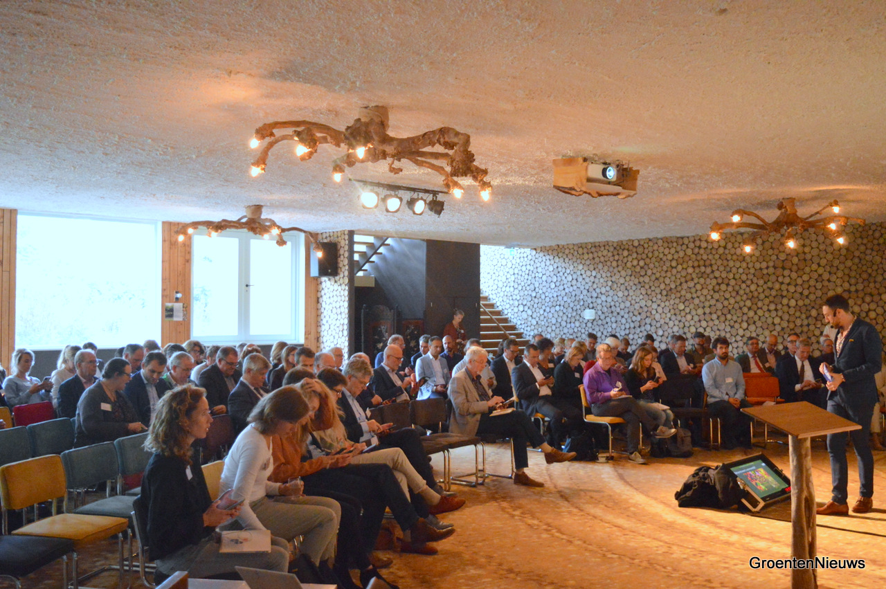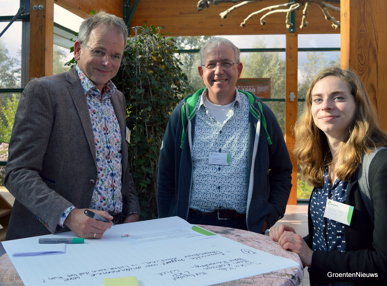 Er waren veel beleidsmakers present, maar ook een enkele teler. Hier op de foto: Peter Ravensbergen (Wageningen University & Research), teler Hans Koolhaas (LKP Plants) en ook de tuinbouwmedia was present, met hier Siska Pater namens Hortipoint.