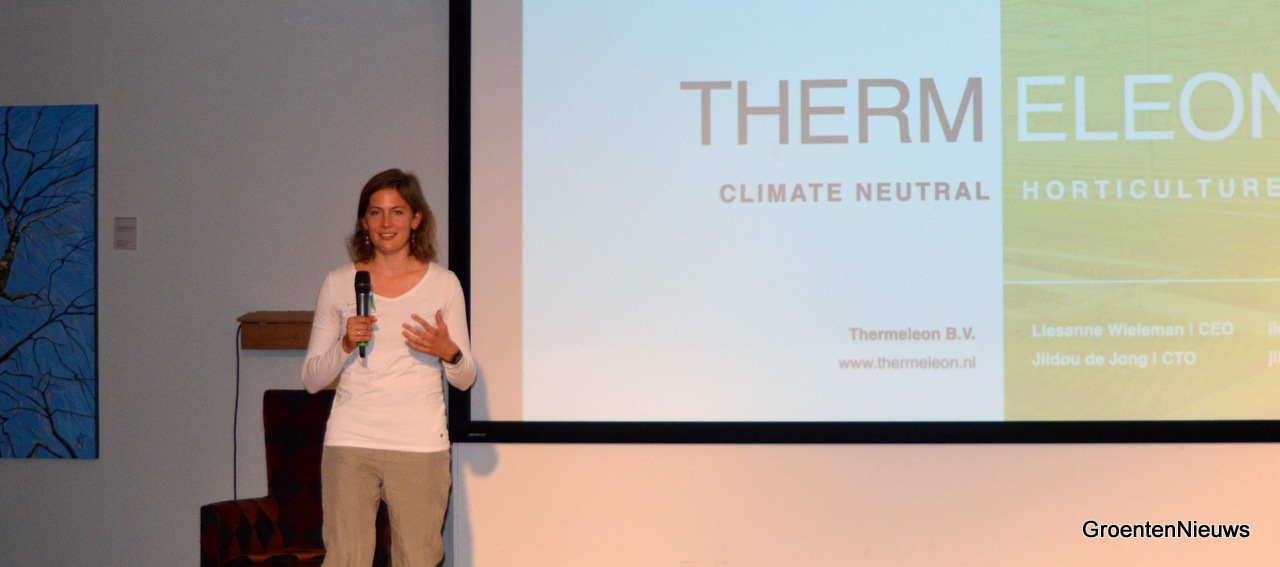 Liesanne Wieleman van Thermeleon sloot het rondje pitches af. Deze startup is tot nu toe misschien de bekendste van de drie en voltooide al een eerste pilot met hun warmtebatterij voor opslag van warmte in scherminstallaties in de kas. Een tweede pilot is aanstaande. Daarvoor wordt nog een kassenbouwer gezocht om 1 hectare kas te bouwen.