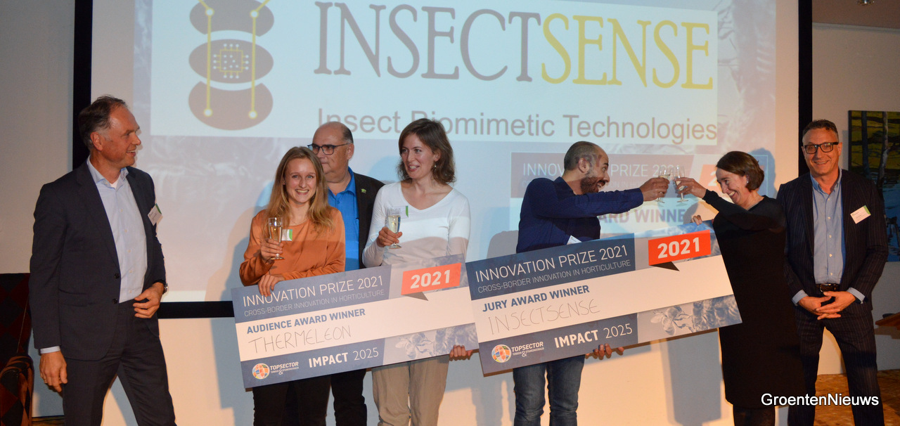 De winnaar van de juryprijs werd InsectSense. De startup gaat het geld steken in extra onderzoek samen met de WUR. Meer over de techniek hier: https://www.youtube.com/watch?v=FwUm6DuyIMk