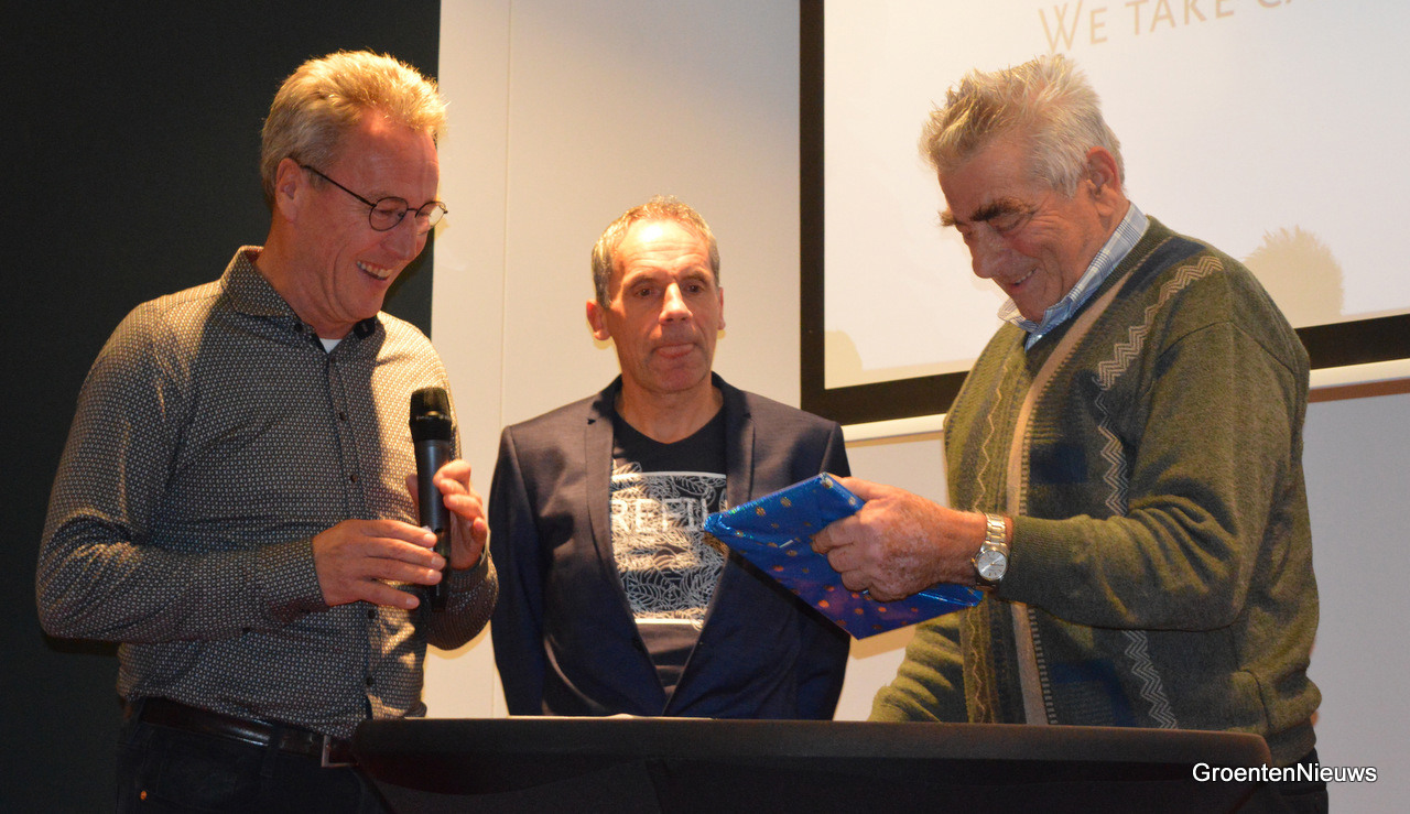 Jaap de Jong mocht het eerste exemplaar uitpakken.