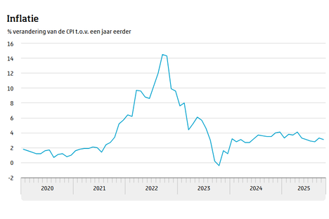 Inflatie in oktober 2025 licht gedaald in Nederland en België
