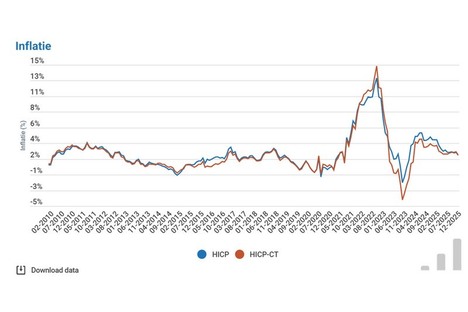 Belgische inflatie naar 2,2%
