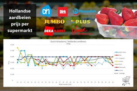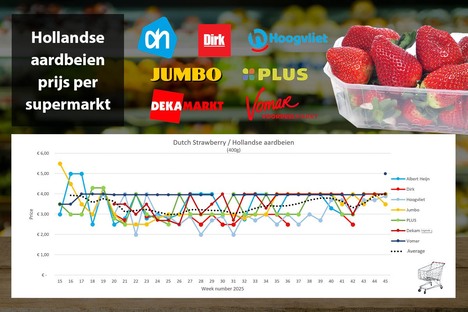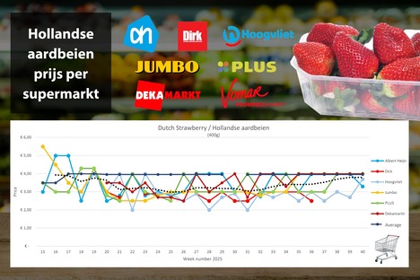 Weinig verschil in retailprijzen kasgroenten en aardbeien