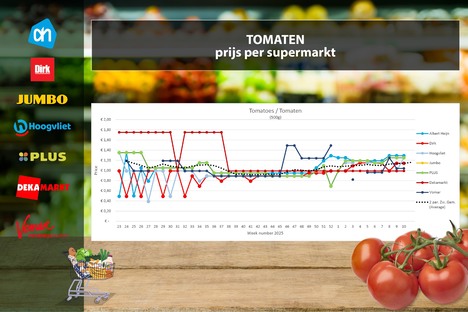 Prijsstijging trostomaten en aardbeien in supermarkt